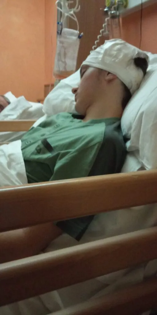 Siamo anche noi frastornati: è la prima volta che ci troviamo in un ospedale, con nostro figlio con la testa aperta da parte a parte; non sappiamo cosa fare, cosa dire, cosa dirgli, cosa fargli fare.
