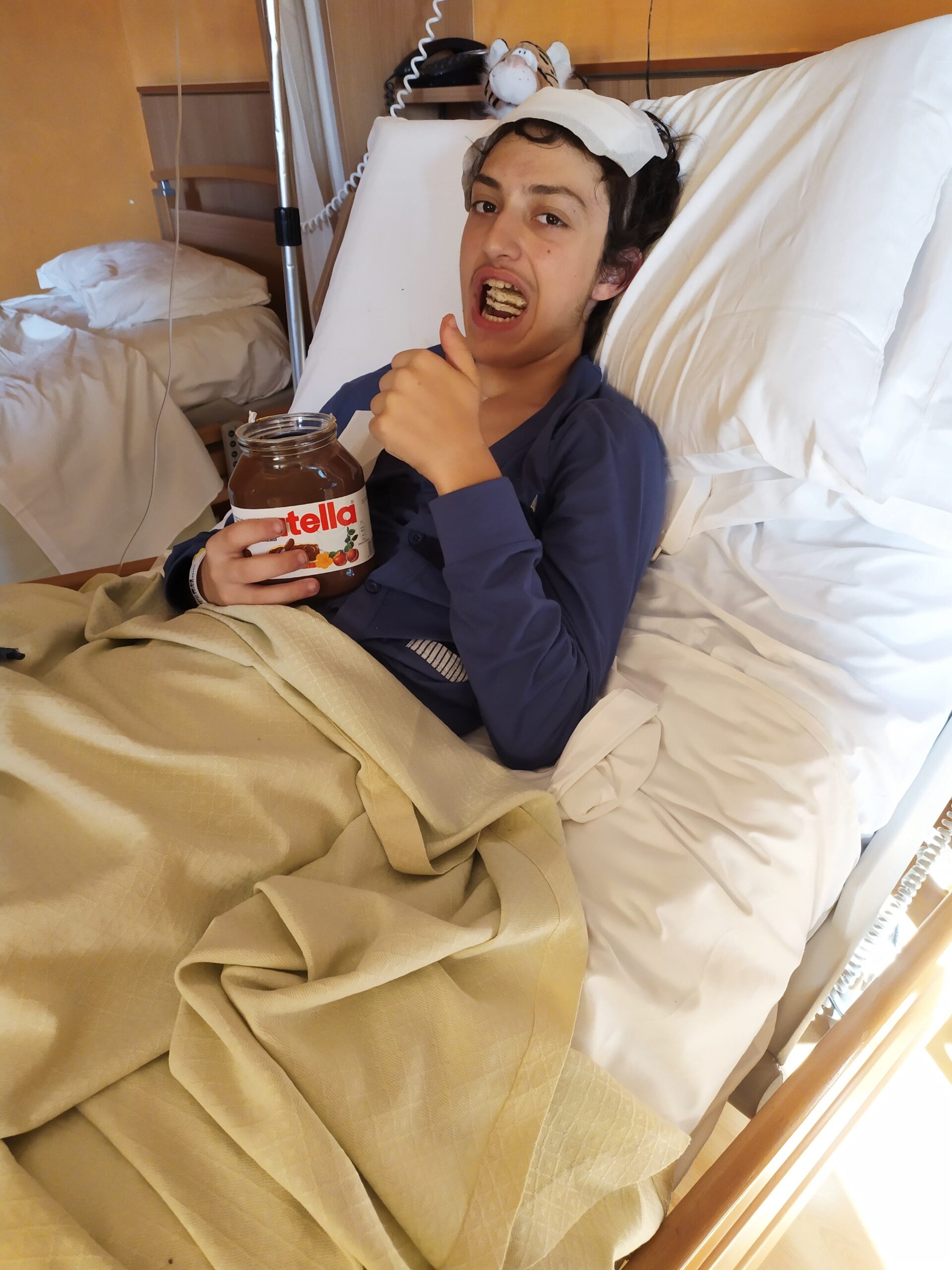 Basta questo piccolo spazio aperto sul capo di Eugenio per stordirci e per farci stringere i denti. Dobbiamo resistere, dobbiamo tenere duro: la lotta è lunga, la guerra all’ependimoma è aspra. Ma lo sconfiggeremo.