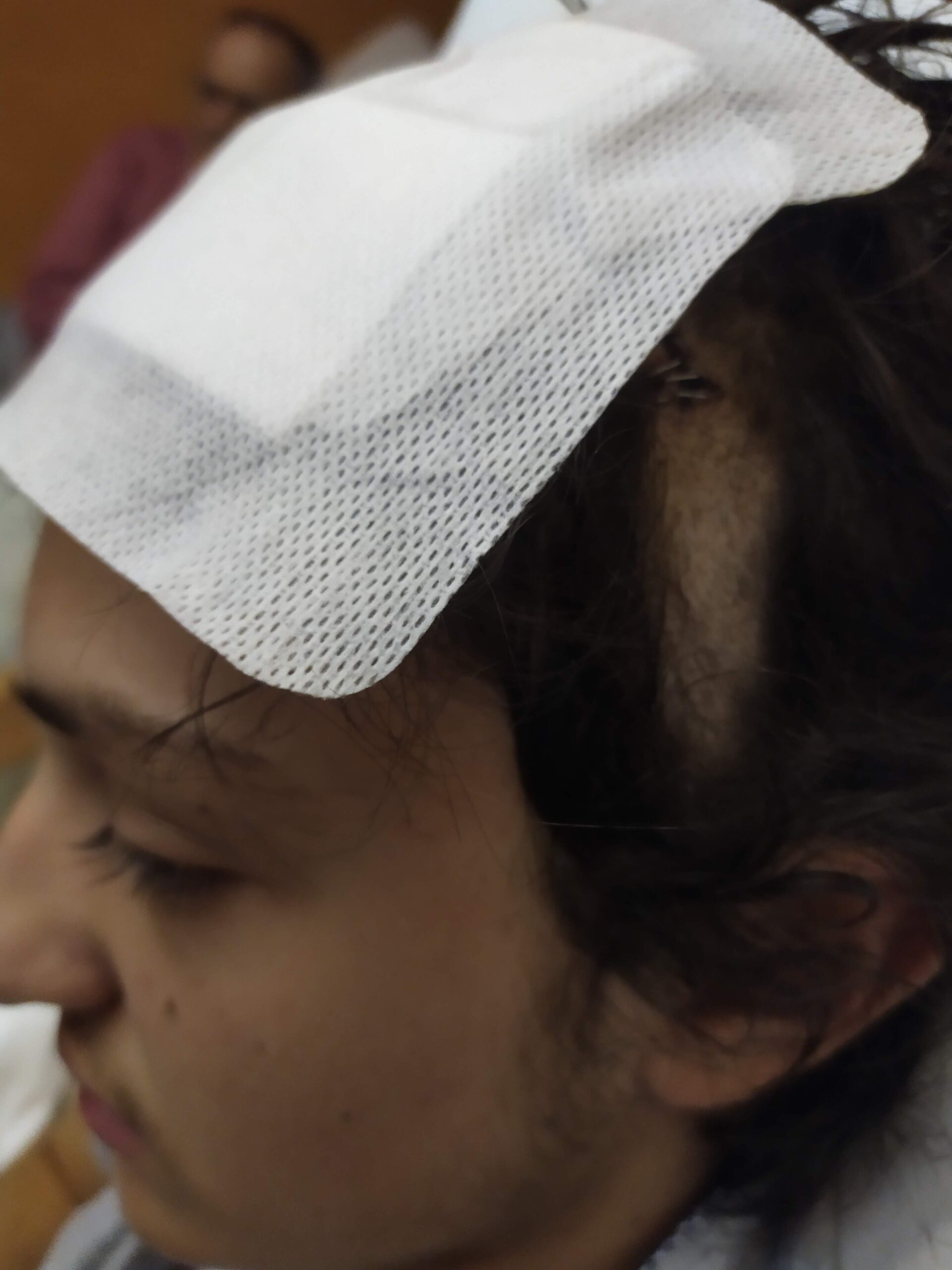 Si intravedono una parte delle clips metalliche usate per chiudere l’ampia ferita.