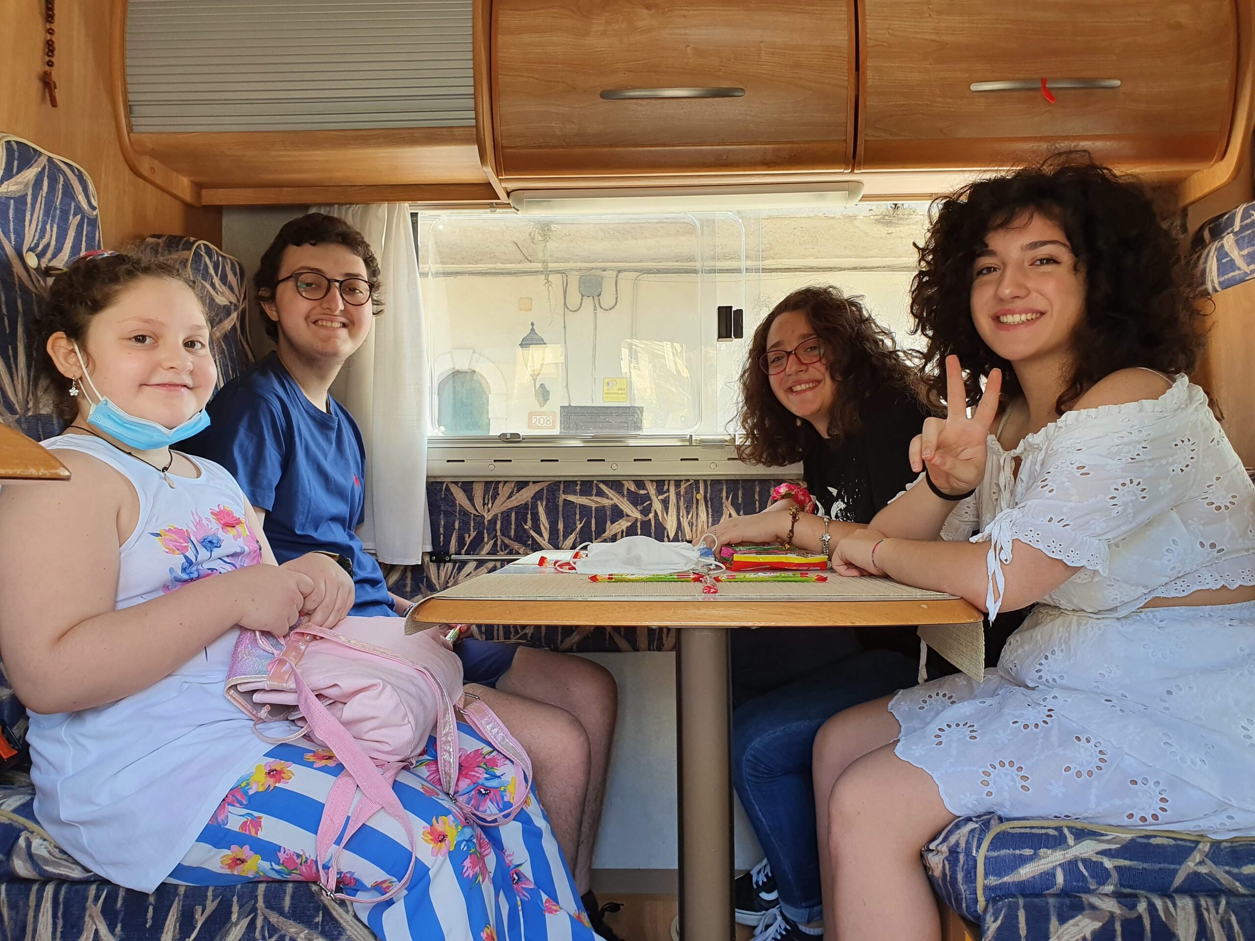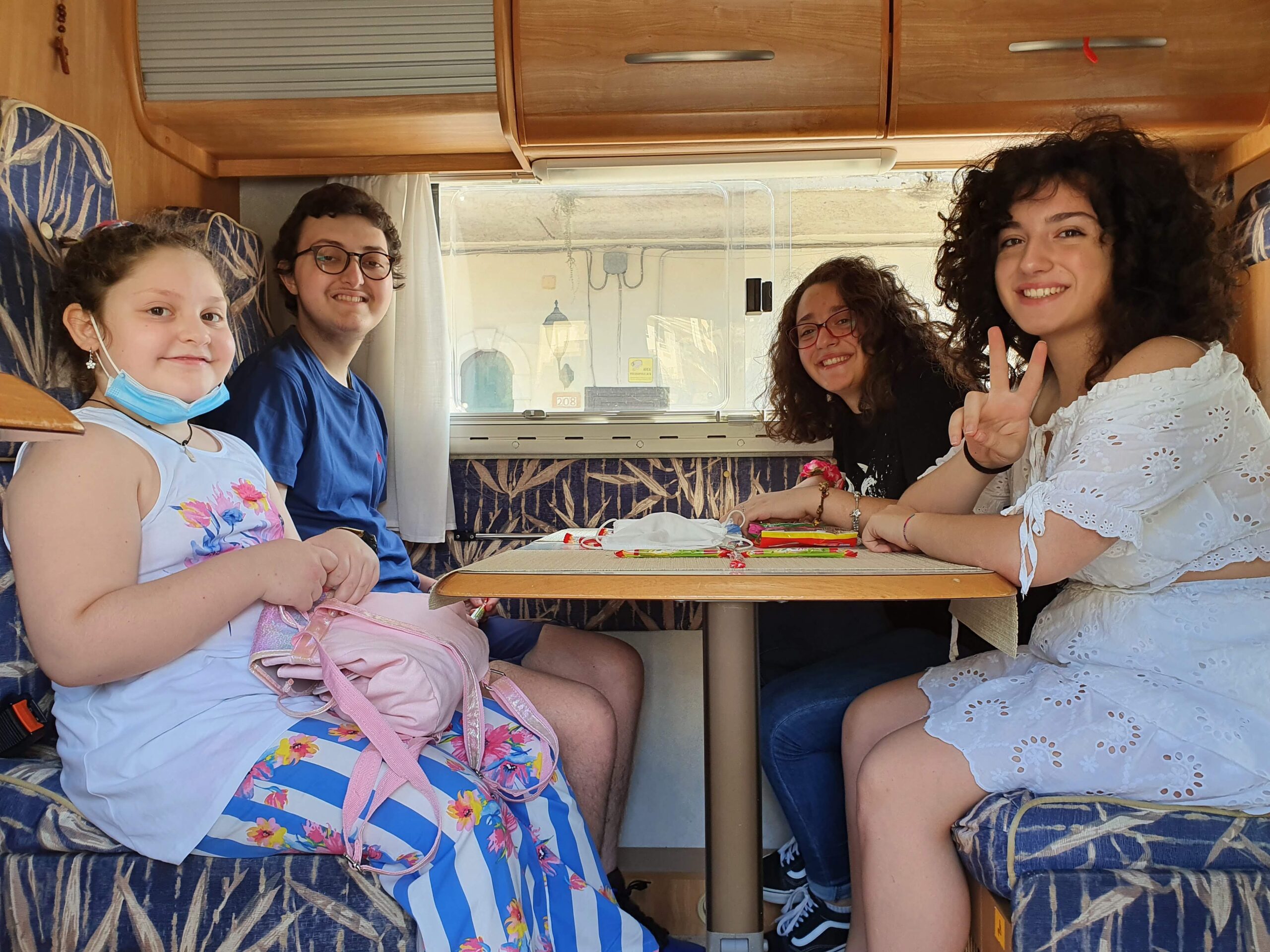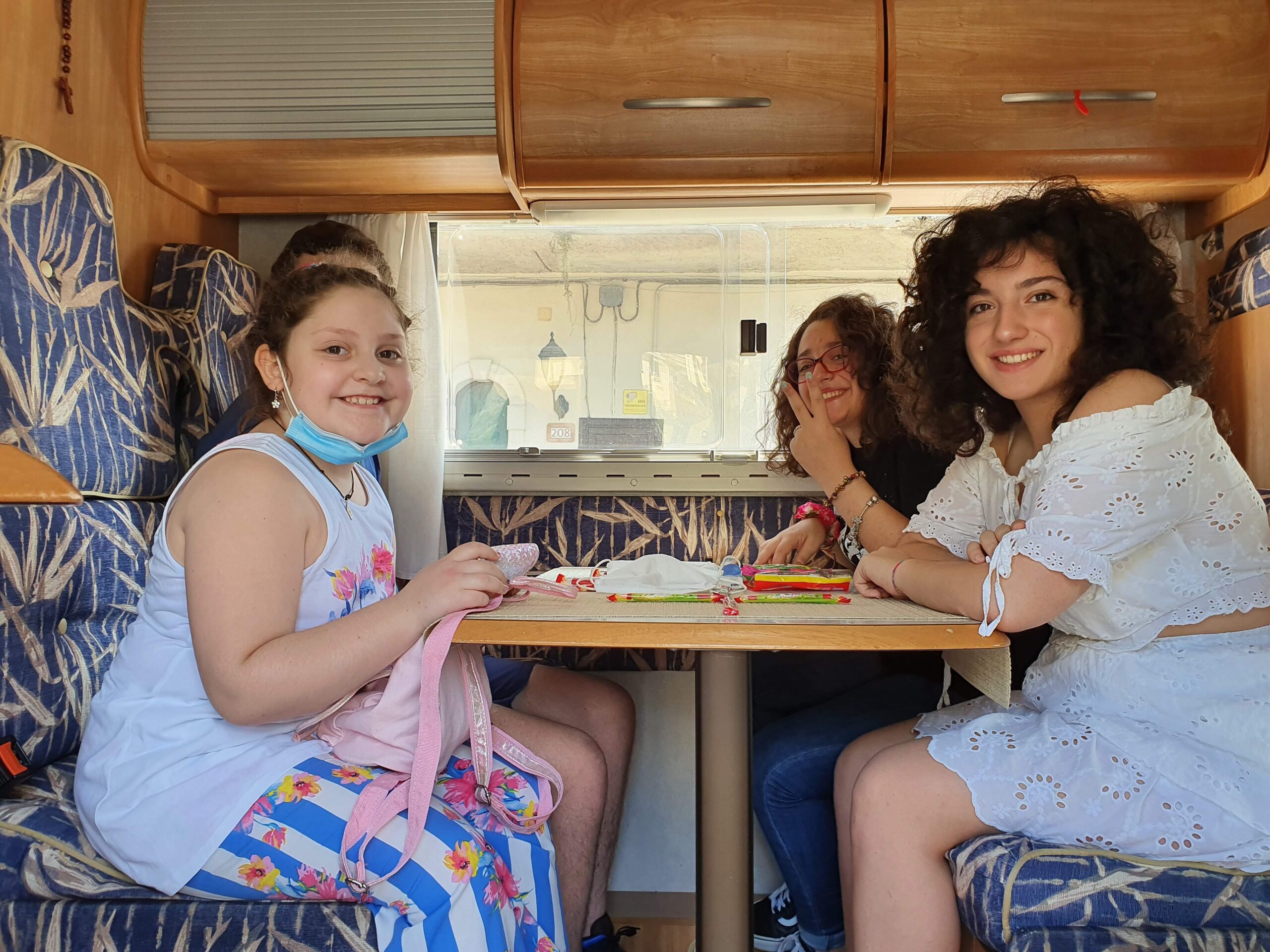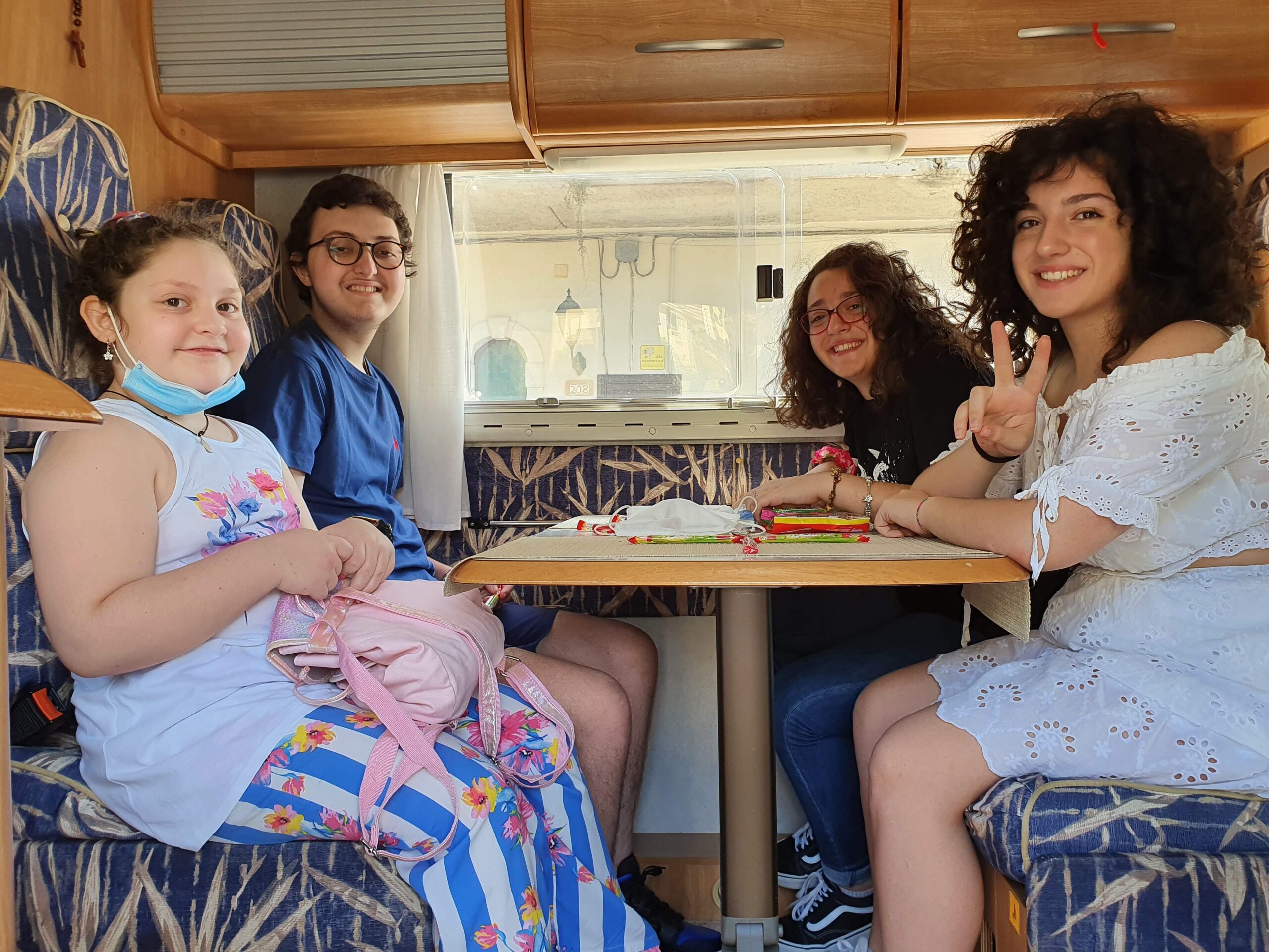 Le ragazze arrivano: siamo pronti. Il motore Ford del camper è bello caldo: si parte!