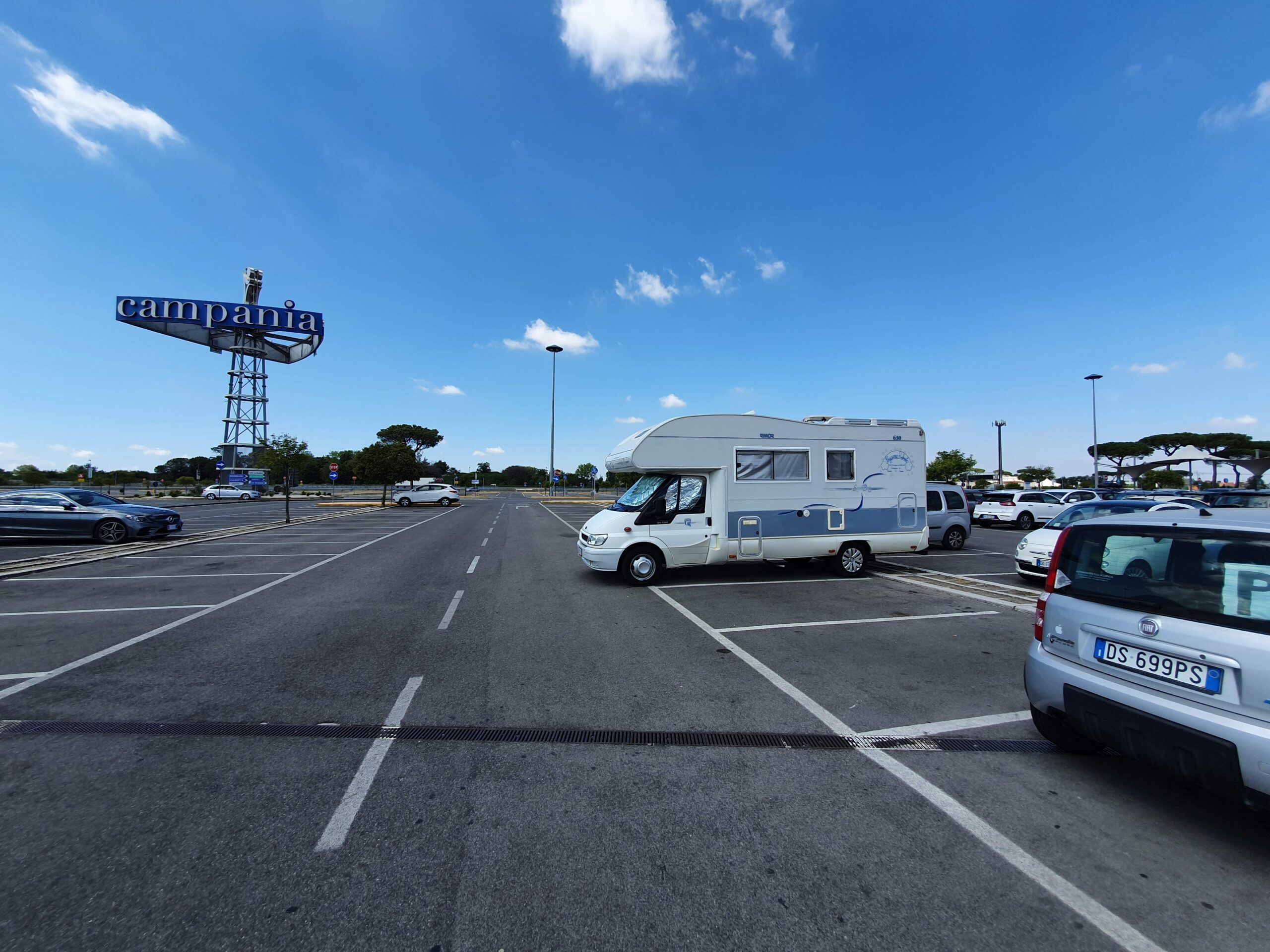 Alle 12 circa siamo già parcheggiati nell’enorme spiazzo del centro commerciale Campania.