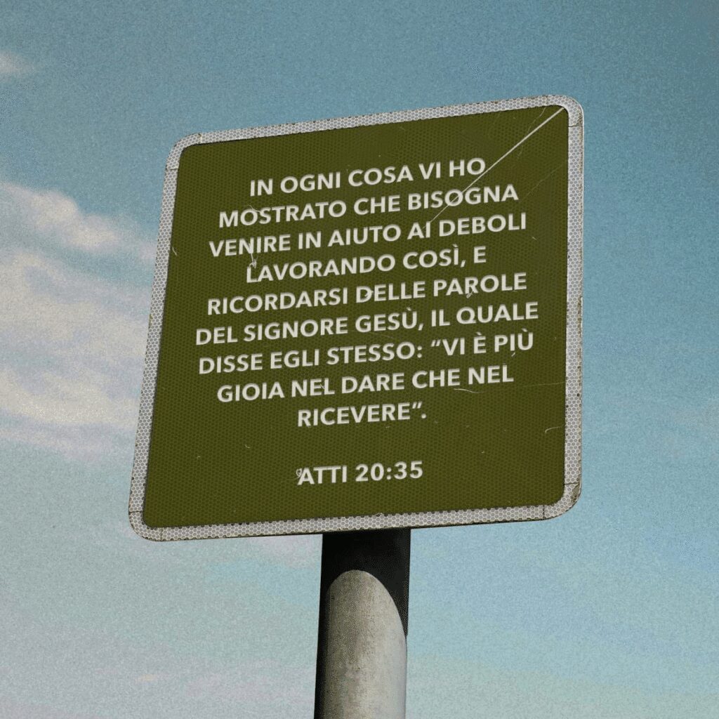 Mentre Paolo parlava alle guide della chiesa di Efeso in Atti 20:35, si assicurava di ricordare loro che la sua vita non era per se stesso, ma volta ad aiutare gli altri. Paolo dice che tutto ciò che faceva era aiutare deboli e bisognosi. Egli non diceva queste cose per vantarsi di se stesso, ma per indicare Gesù come l’esempio del vero amore.