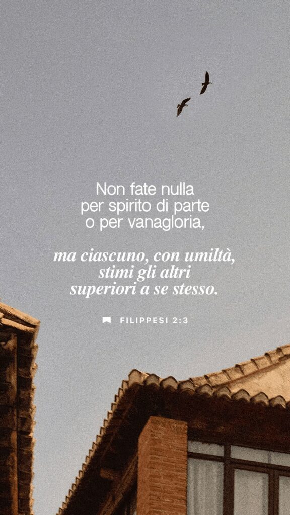 “Non fate nulla per spirito di parte o per vanagloria, ma ciascuno, con umiltà, stimi gli altri superiori a se stesso, cercando ciascuno non il proprio interesse, ma {anche} quello degli altri. Abbiate in voi lo stesso sentimento che è stato anche in Cristo Gesù…”