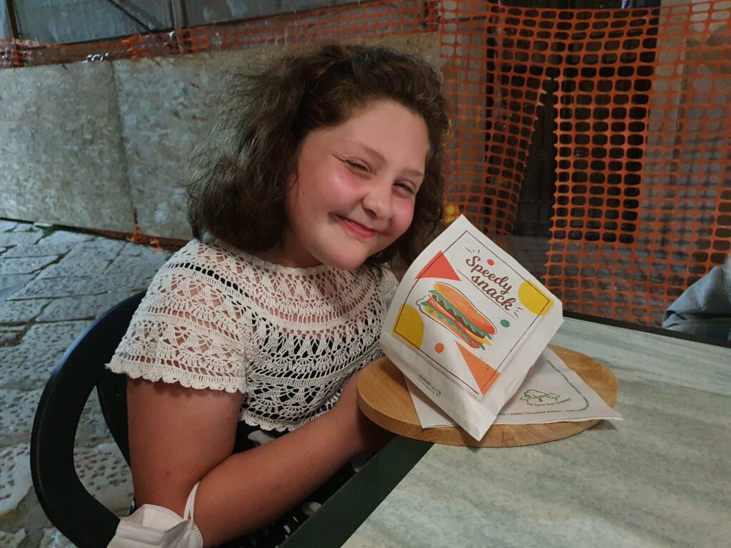 Abbiamo degustano, o per meglio dire mangiato a quattro ganasce, un ottimo panzerotto con mozzarella e pomodoro da “I fritti di Mina“. Mentre noi adulti chiacchieravamo del più e del meno, le ragazze, per non chiamarle bambini altrimenti potrebbero offendersi, si divertivano a scimmiottarci e chiacchierare delle loro preferenze musicali.