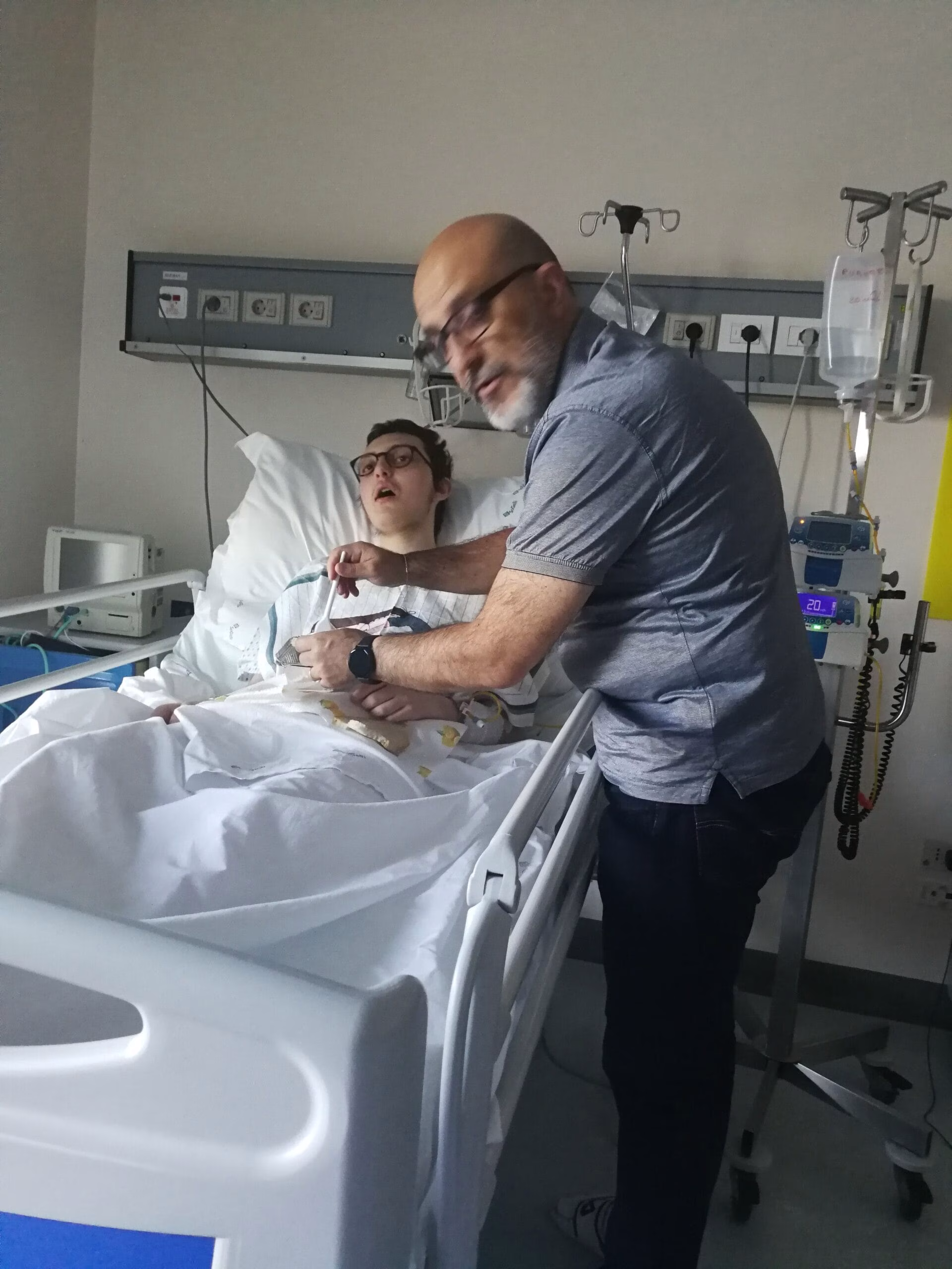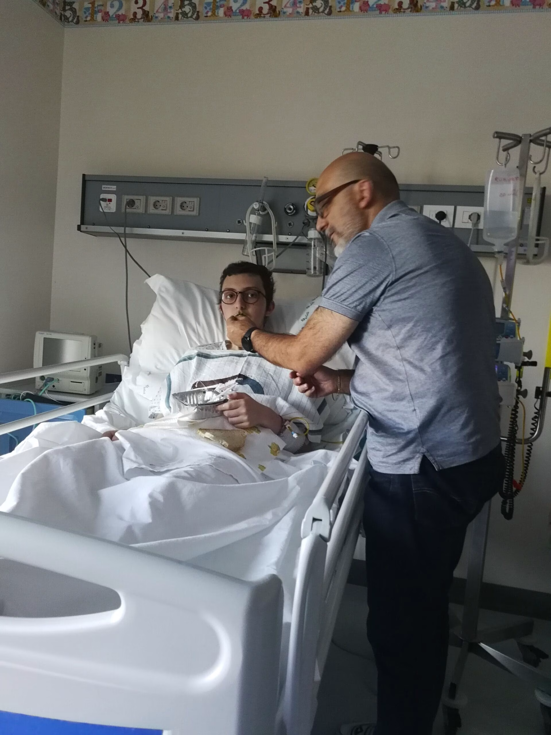 Eugenio nel suo letto, attaccato ad una flebo, mi stringeva la mano ed io la stringevo a mia moglie Giuseppina.