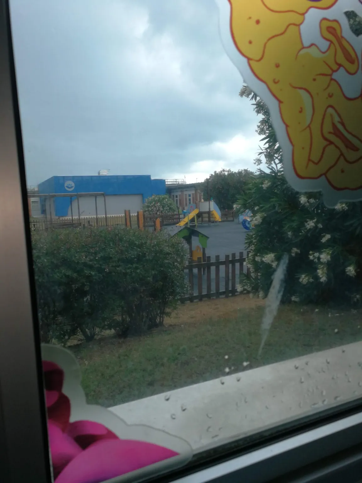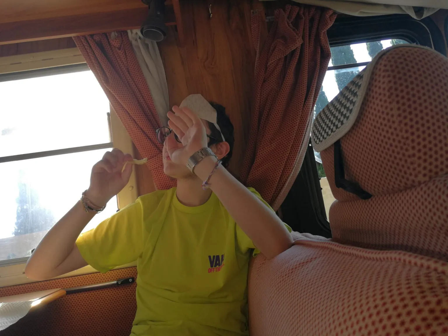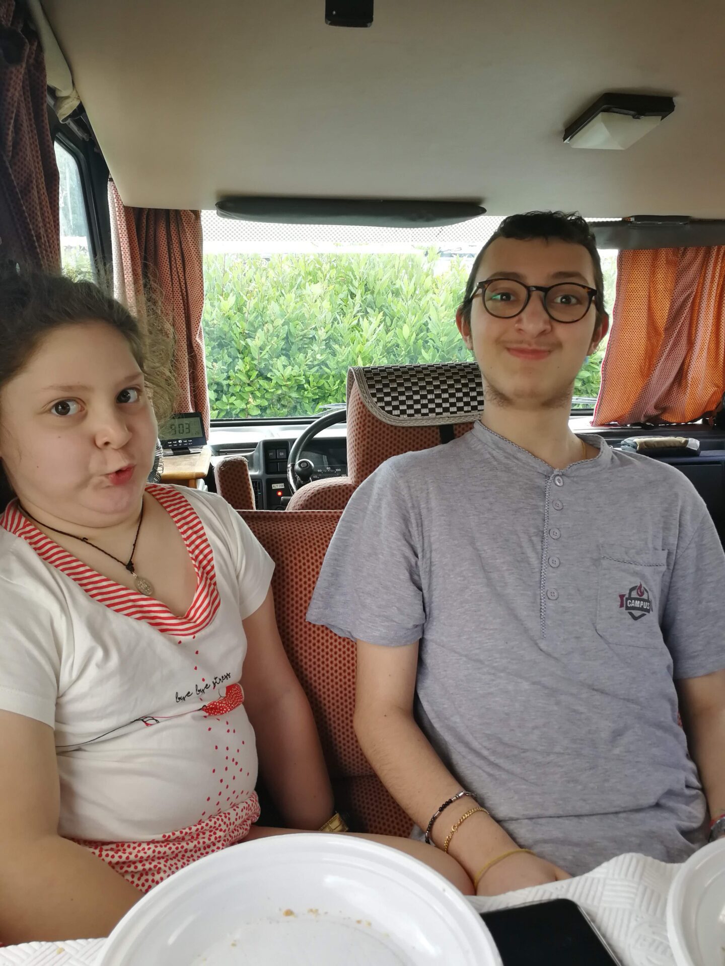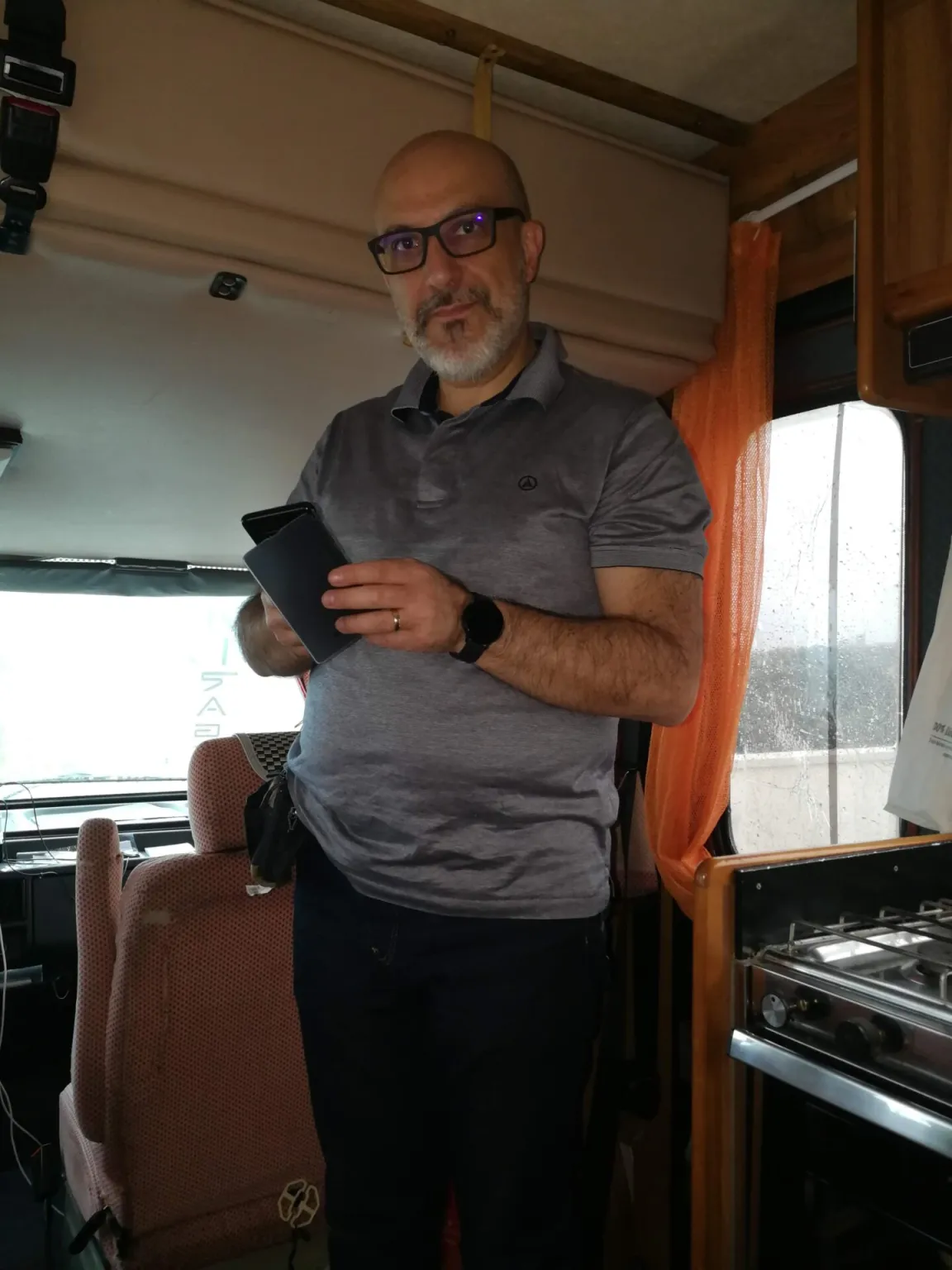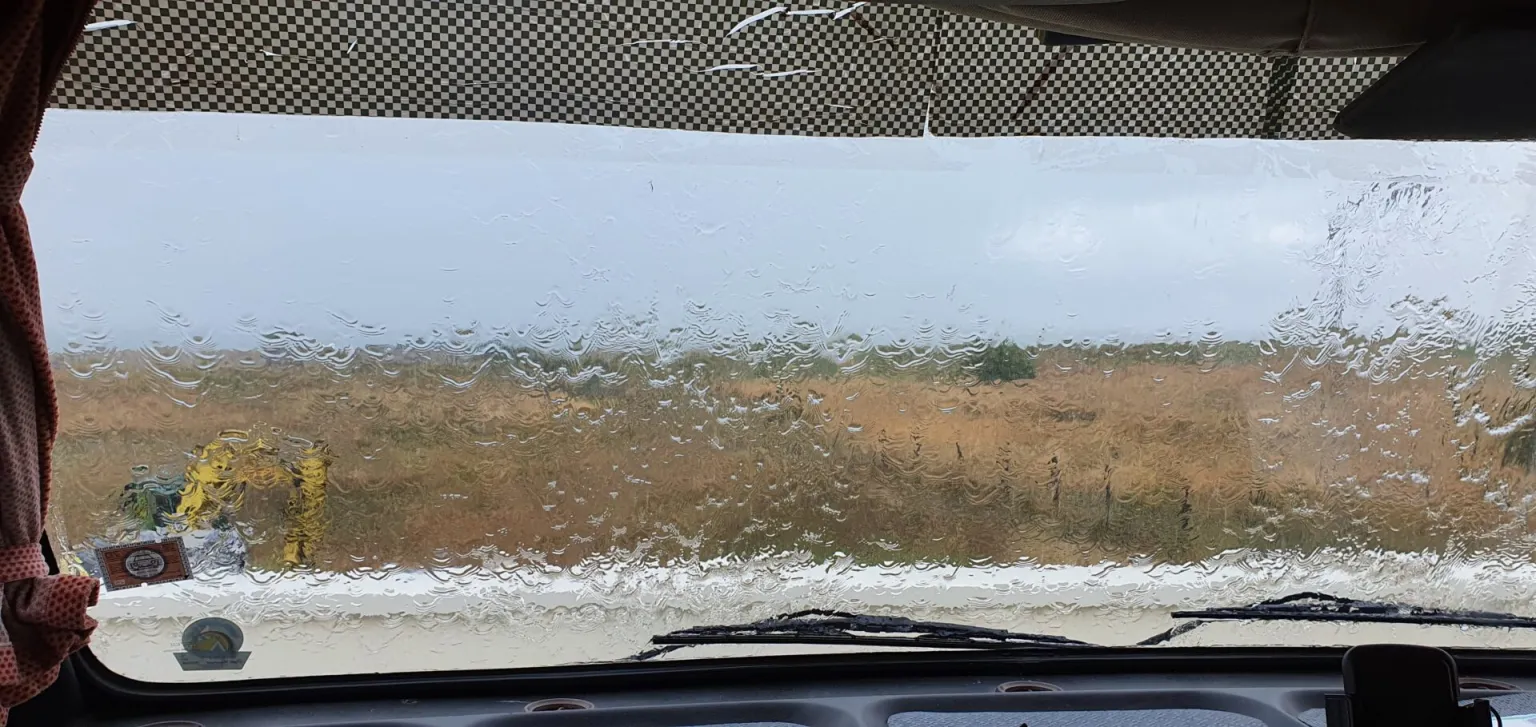 Diluvia ancora. Io e Francesca aspettiamo nel camper.
