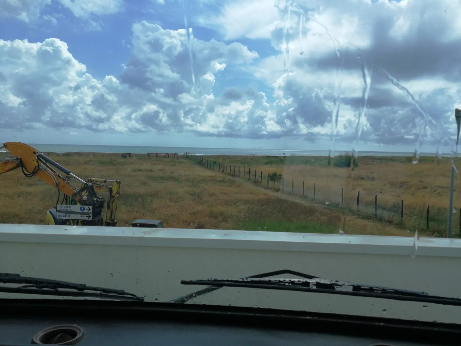 Per la strada, verso Fregene, ci coglie un diluvio forse peggiore di questo notturno appena trascorso. Ma noi, integerrimi, continuiamo dritto per la nostra strada.