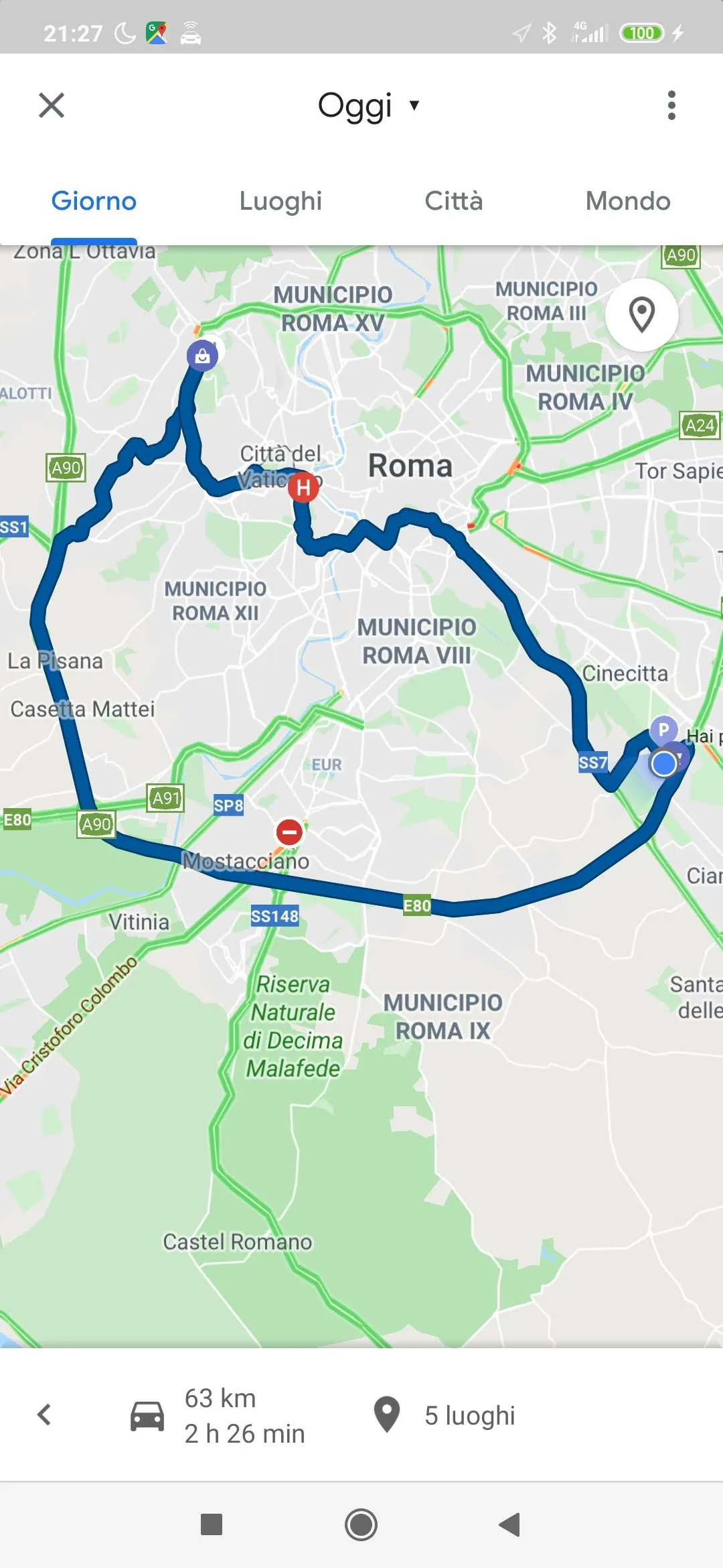 1 ora e 12 minuti per fare 20 km dall’ospedale Bambino Gesù a via Joan Mirò; alle 17 siamo a casa Roma