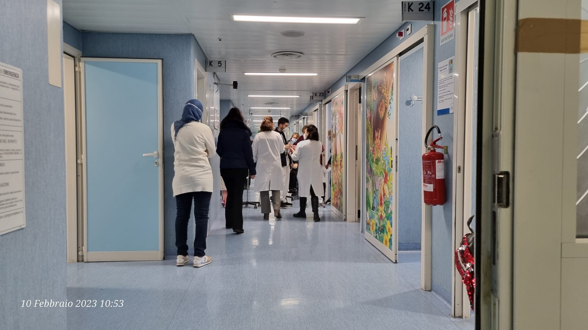 Entriamo direttamente in reparto, passando avanti alla ludoteca di piano, con lo sguardo fisso e le orecchie sorde a quel microfono che snocciolava nomi e indicazioni (e nella mia mente rimbombava “Ruberto in k6″, “Ruberto in k13“); ci fermiamo avanti all’ufficio della caposala e attendiamo Elsa.