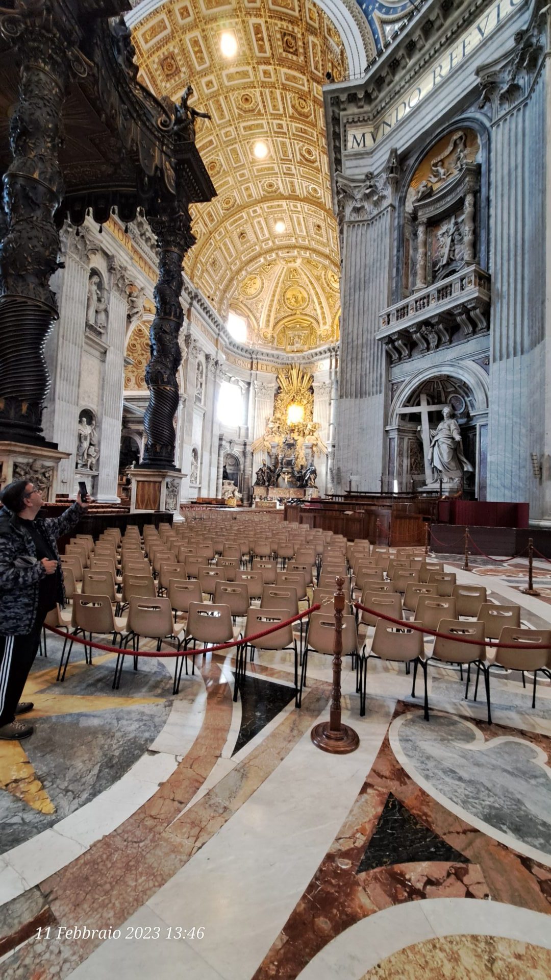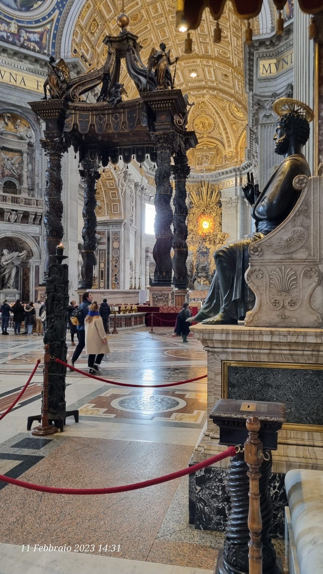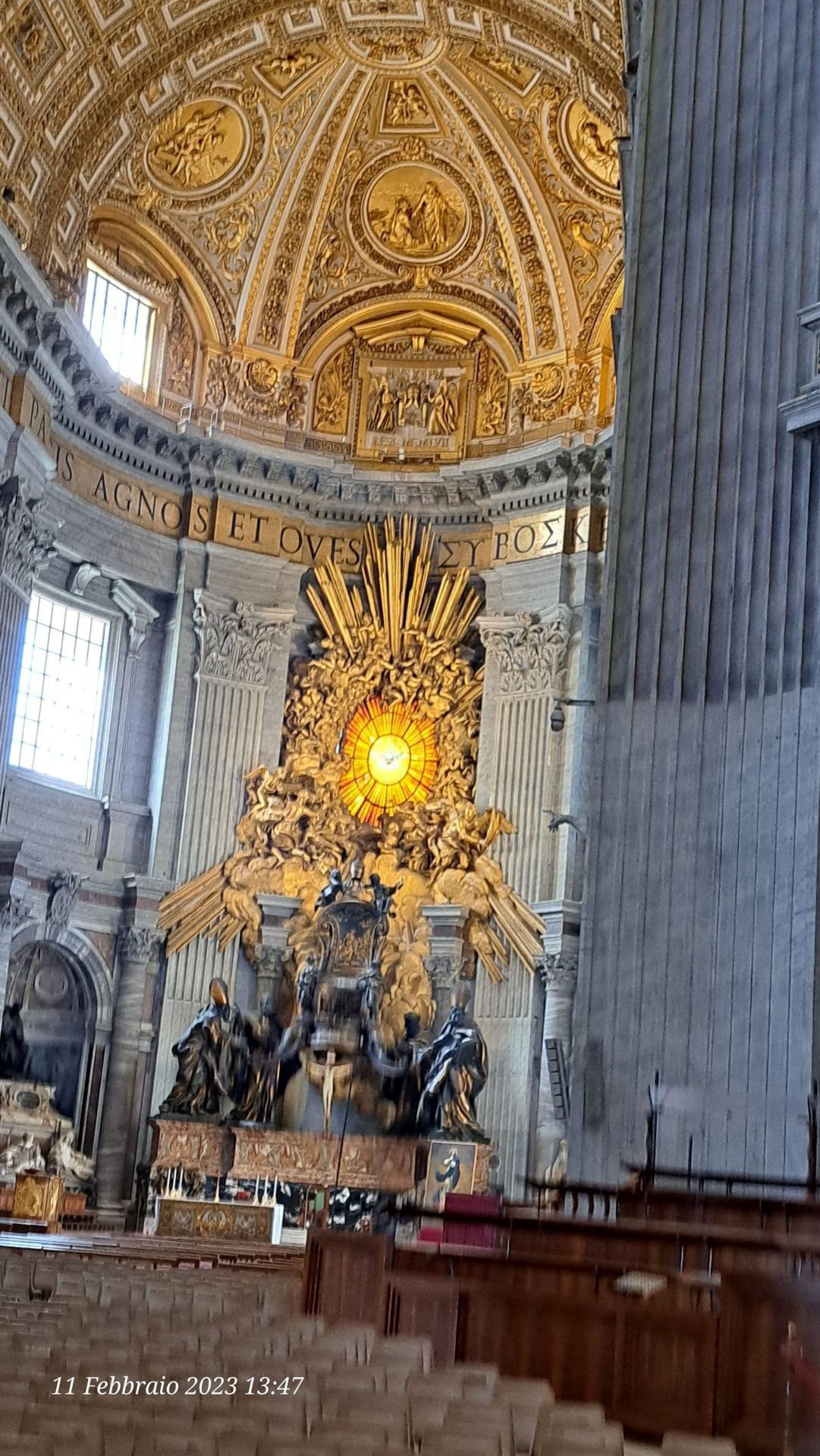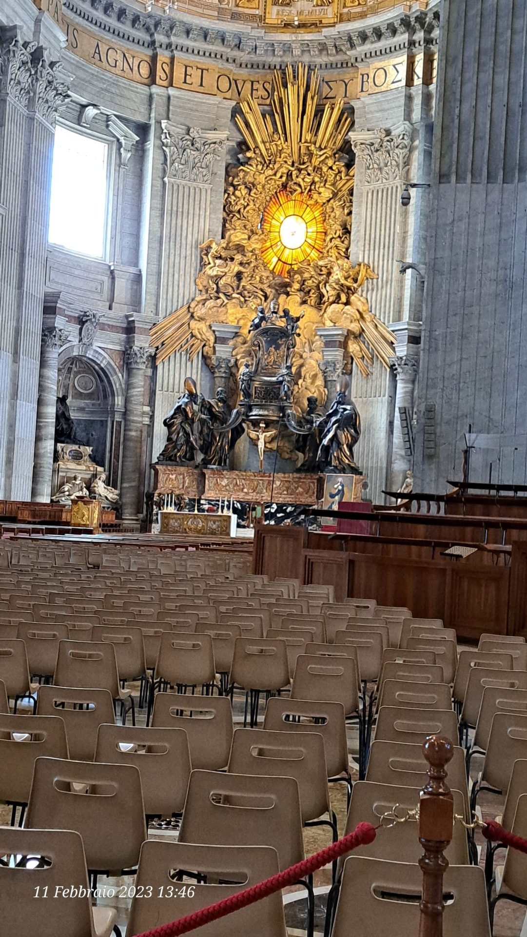 Il tempo scorre, ma per noi è come essere appena entrati. Ci rendiamo conto di non aver pranzato, che è pomeriggio inoltrato. Alle 17.00 c’è la messa vespertina all’altare della Cattedra e decidiamo di partecipare anche al Rosario che la precede.