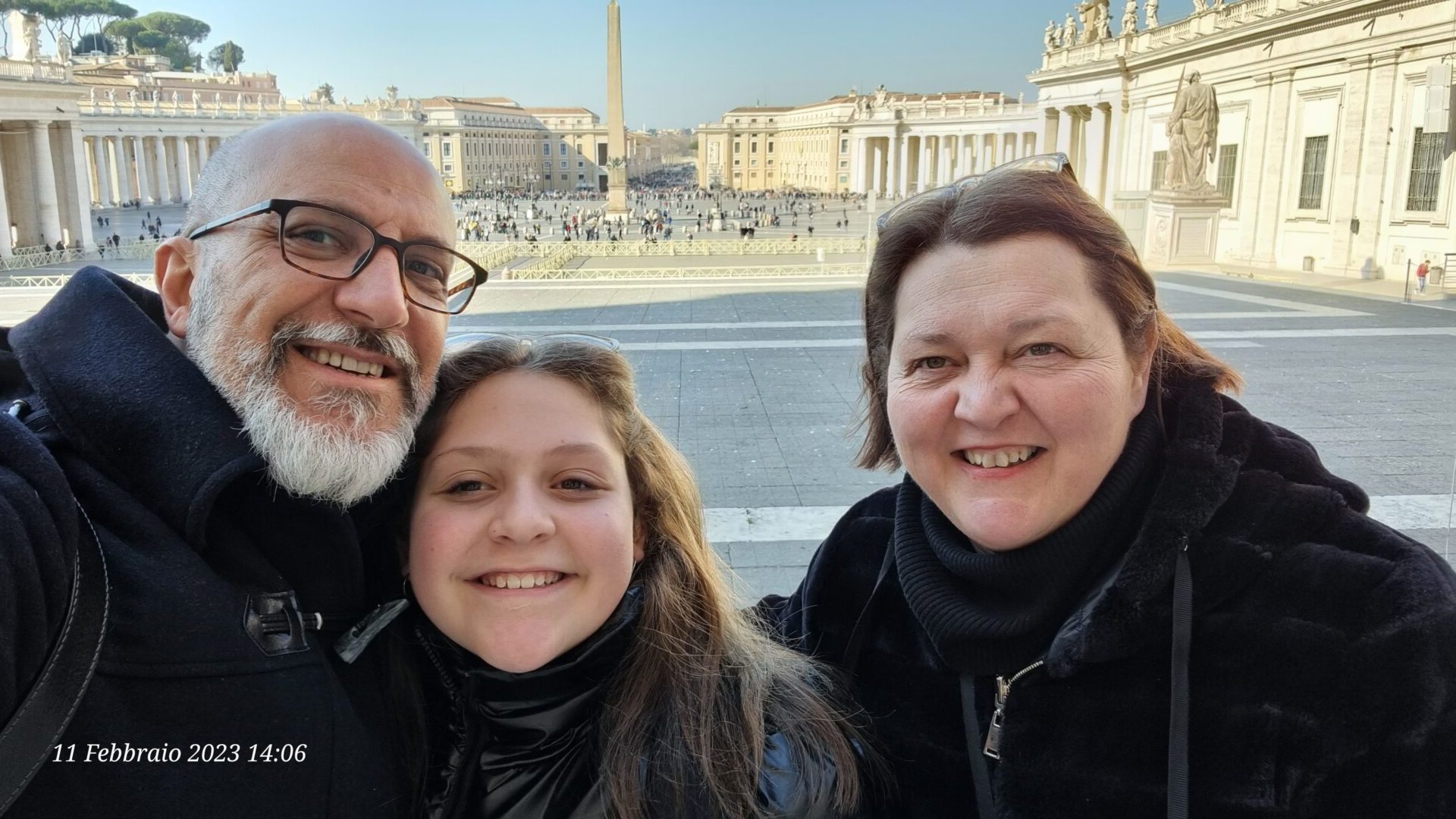 Il programma di oggi prevede la partecipazione all’Angelus di Papa Francesco, a mezzogiorno, e poi rientro a casa così che non si faccia troppo tardi per permettere a Francesca di prepararsi per la scuola per lunedì.