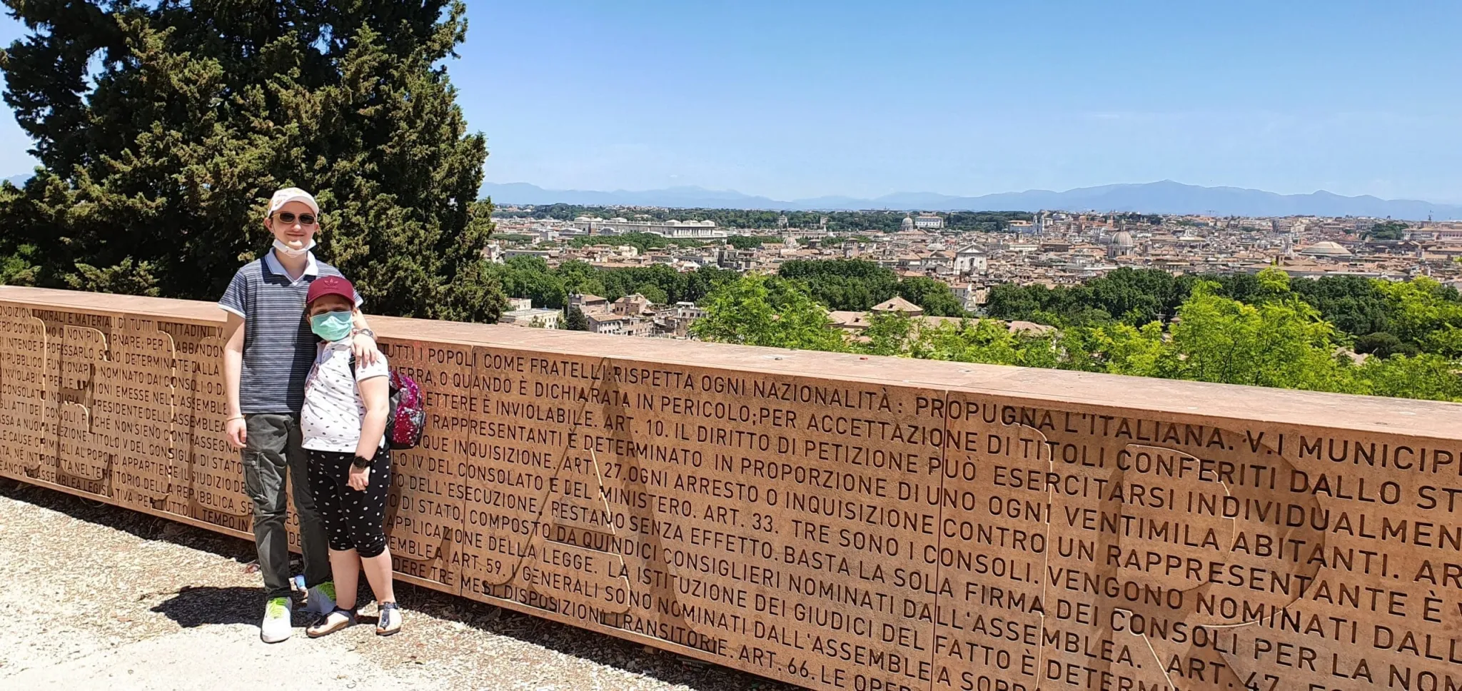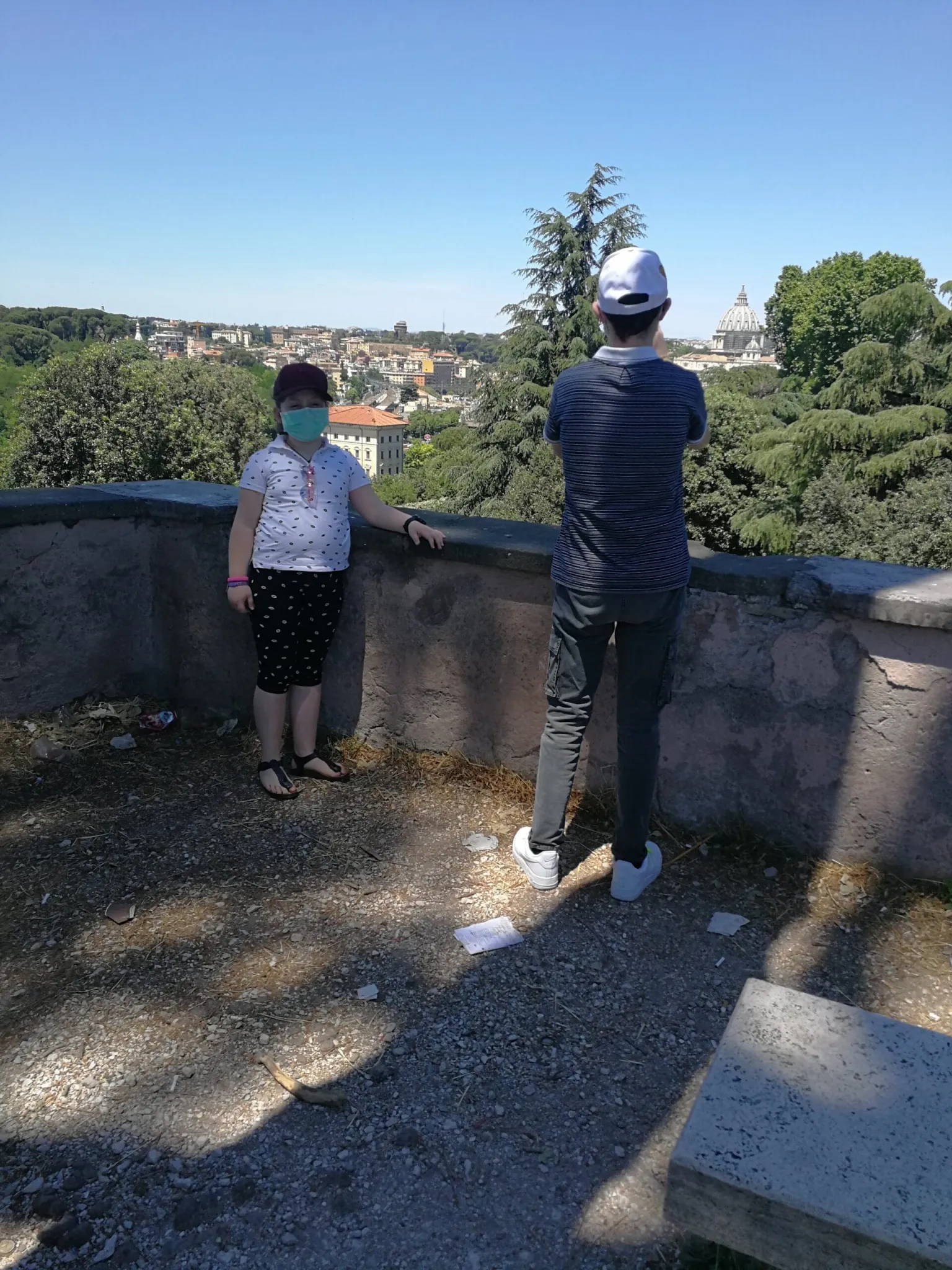 Il panorama di Roma è stupendo, Eugenio e Francesca sono sereni, freschi della loro gioventù, spensierati. Col passo sempre instabile ed insicuro, Eugenio tiene sempre alta la mia attenzione. Talvolta cerco di scrutare nella sua mente, nei suoi pensieri, e cerco mio figlio, l’Eugenio che ho smarrito il 15 settembre 2019, il giorno in cui la prima operazione al cervello l’ha allontanato da me, l’ha allontanato da tutti, e vaga libero e perso nei suoi pensieri. Di chissà quale mondo.