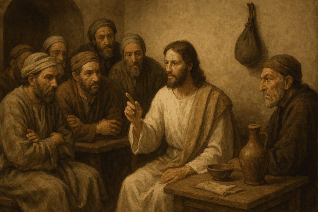Quando fu uscito di là, gli scribi e i farisei cominciarono a trattarlo in modo ostile e a farlo parlare su molti argomenti, tendendogli insidie, per sorprenderlo in qualche parola uscita dalla sua stessa bocca.