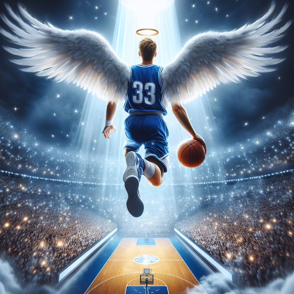 Mikael aveva ali immense e bianche, perfette per volare tra le stelle, ma lui le preferiva usare per fare dei fantastici slam dunk su un canestro di nuvole che si era costruito. Il suo parquet era una distesa di stelle scintillanti e la palla, una cometa luminosa che lui dribblava con maestria.