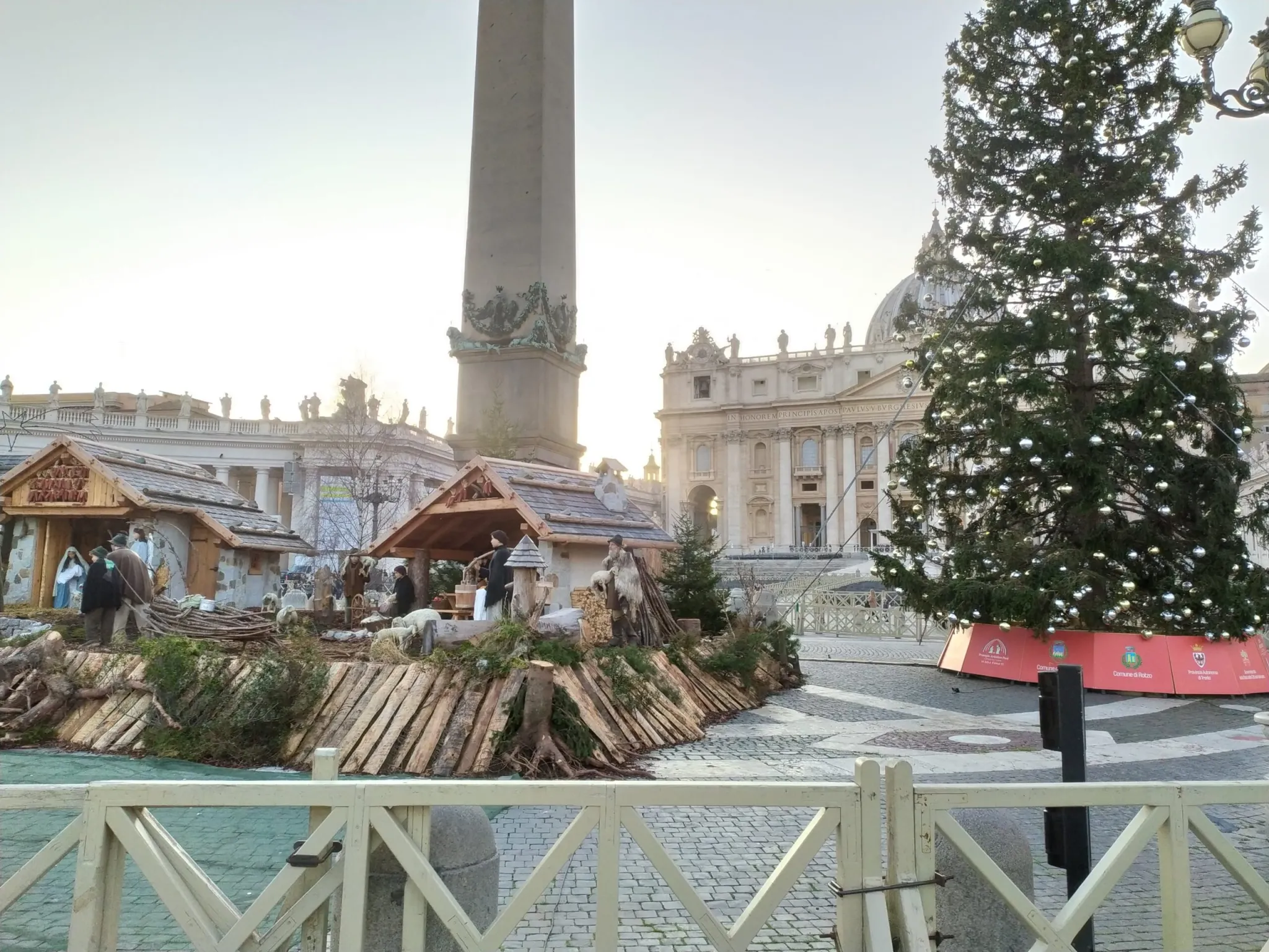 500 metri a piedi, che per Eugenio sono stati 25 chilometri, a fatica, ma con tanto amore nel cuore, raggiungiamo la nostra affezionata Piazza San Pietro. Il tempo è ottimo, tiepido, scalda il cuore