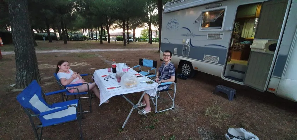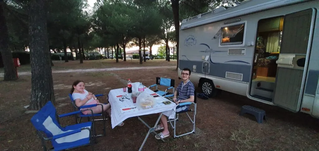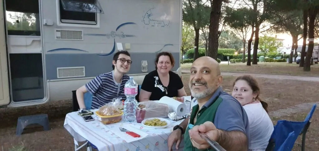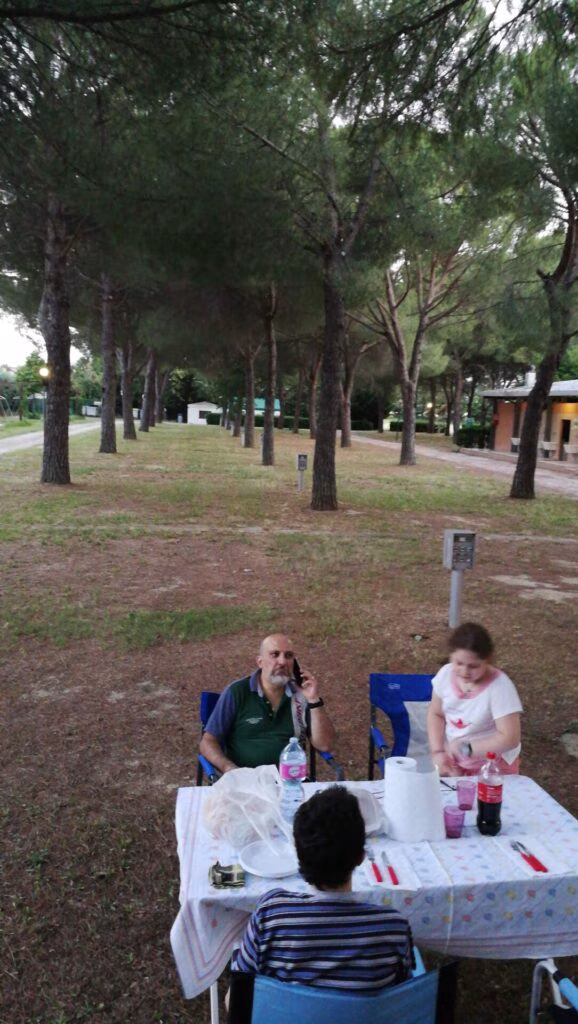 Il camper Pio di Eugenio è dotato anche dell’aria condizionata nella cellula abitativa; così consiglio al nostro guerriero di mettersi comodo sui divani, con Francesca e mamma.