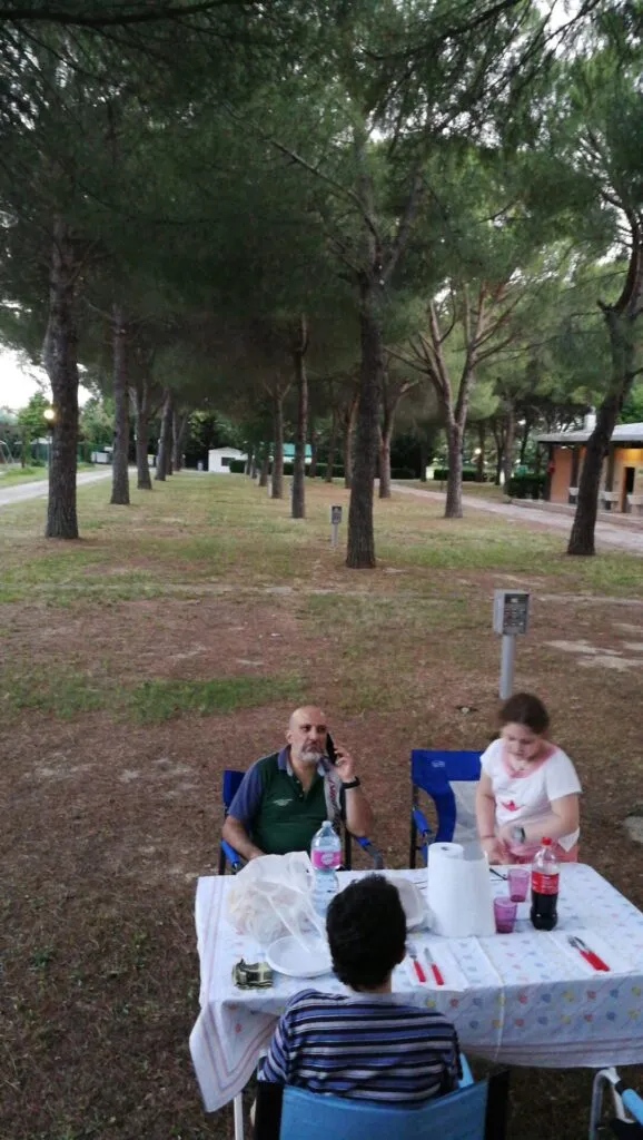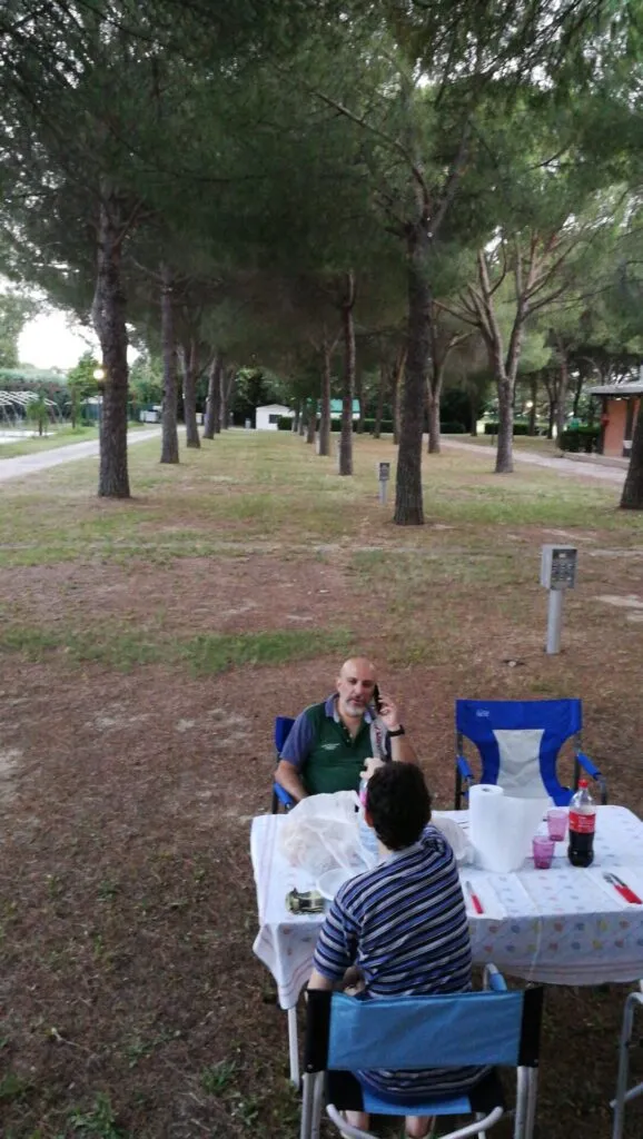 Alle 20 raggiungiamo il camping che avevamo già prenotato: grandissimo, quasi deserto, con alberi secolari e freschissimi. Tanto che dobbiamo indossare dei maglioncini e giubbini.