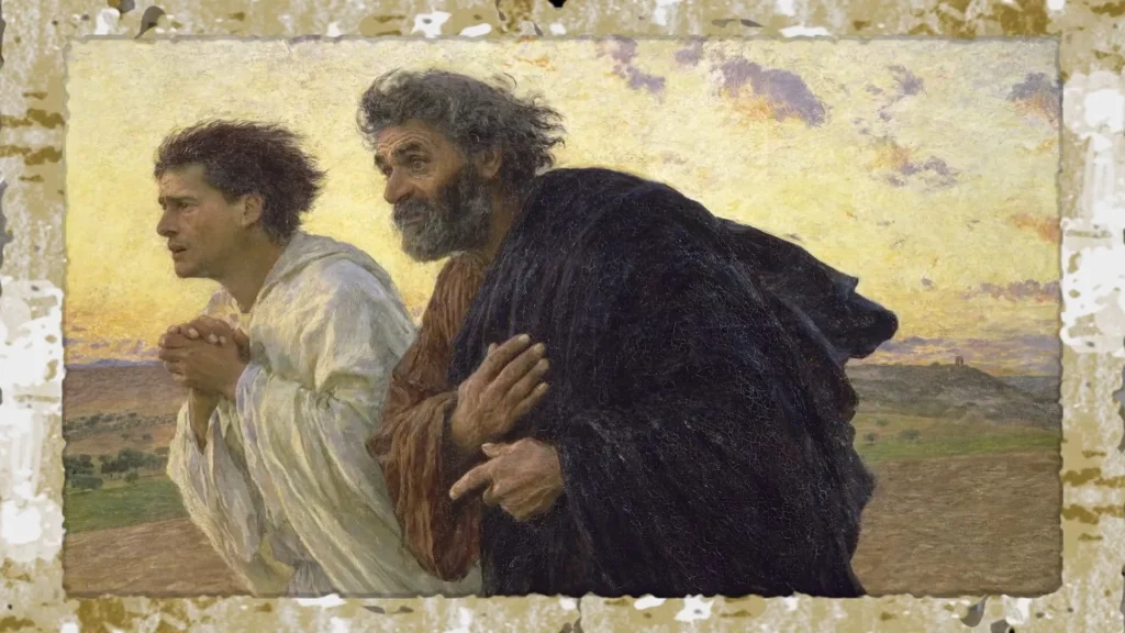 Nel 1898 Eugène Burnand ha dipinto i discepoli Pietro e Giovanni corrono verso il sepolcro il giorno della resurrezione di Cristo.