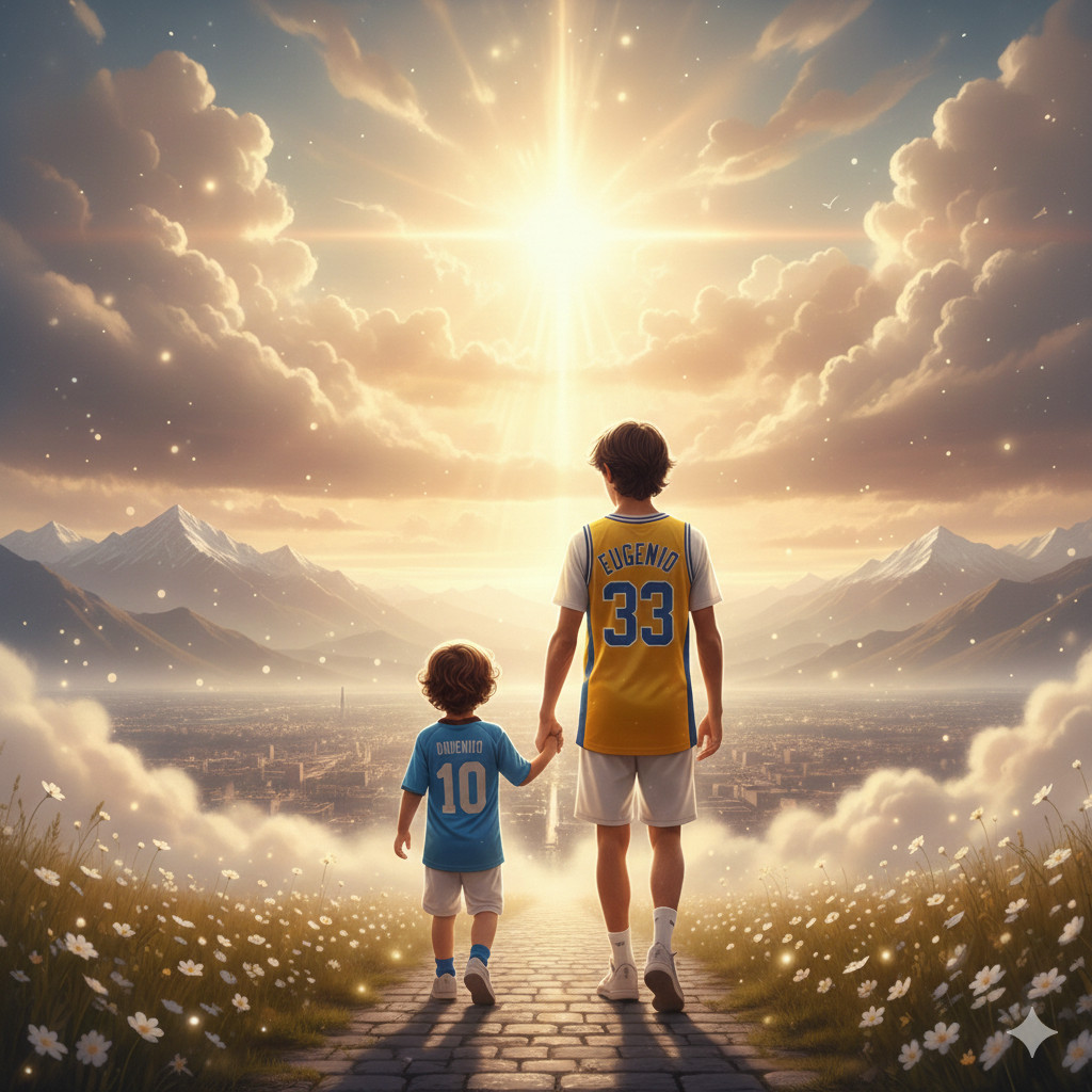 Eugenio, figlio mio, stasera la tua “casetta eterna” ha un nuovo inquilino. Immagino il tuo sorriso mentre accogli Domenico, mentre gli spieghi che lì non ci sono più aghi, non ci sono più Ecmo, non c’è più quel freddo delle sale operatorie. Immagino che lo prenderai per mano per portarlo a giocare nei prati del Cielo, anche qualche tiro a basket gli insegnerai, dove ogni bambino ritrova la salute e la gioia piena.