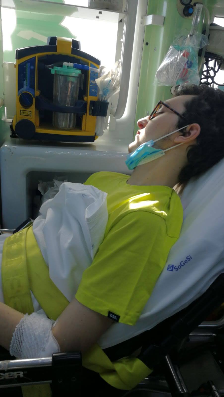 Sono le 7.30 e siamo già pronti. Arriva l’infermiere con la terapia giornaliera, ci salutiamo e ora aspettiamo l’arrivo dell’ambulanza.