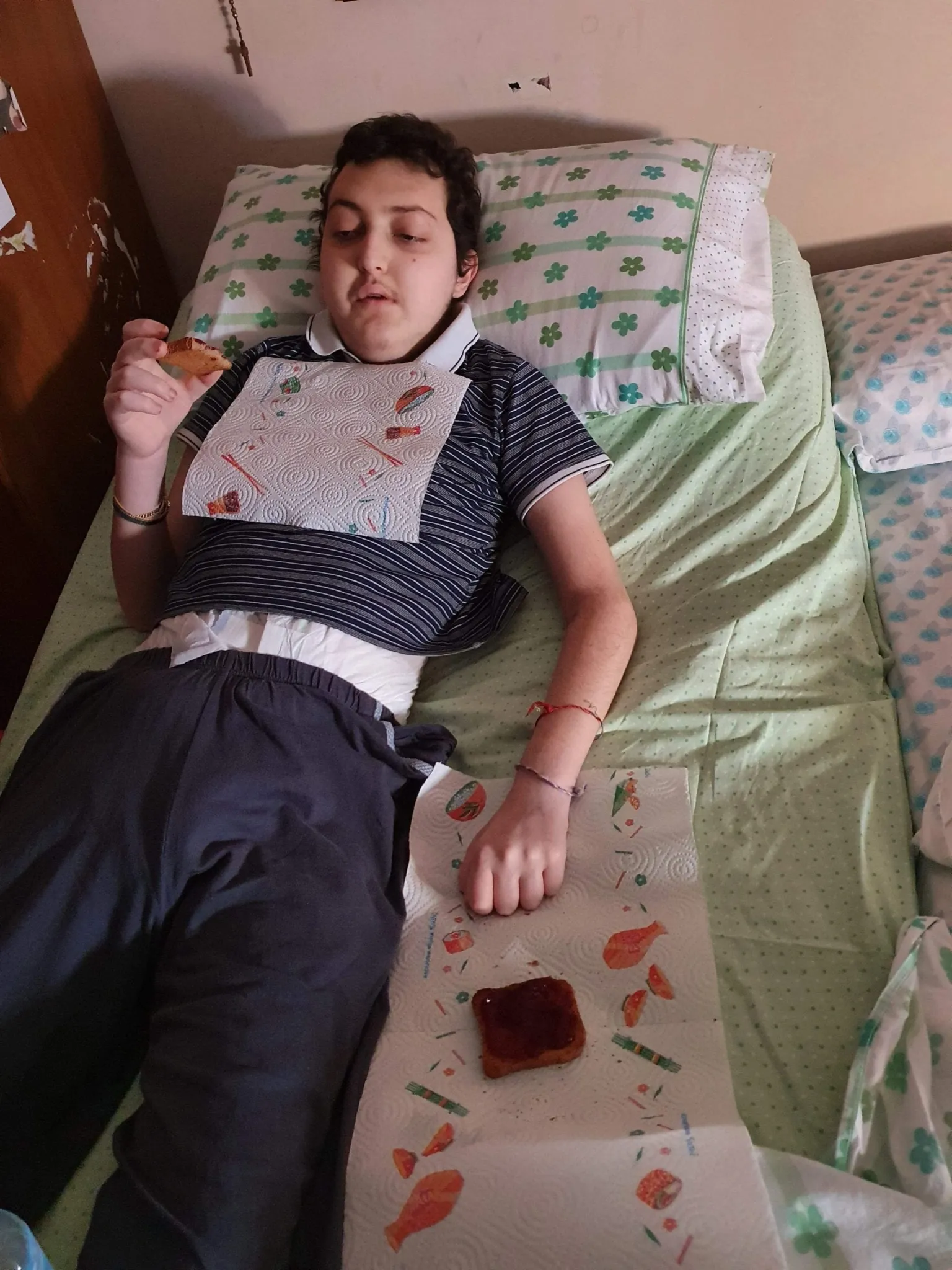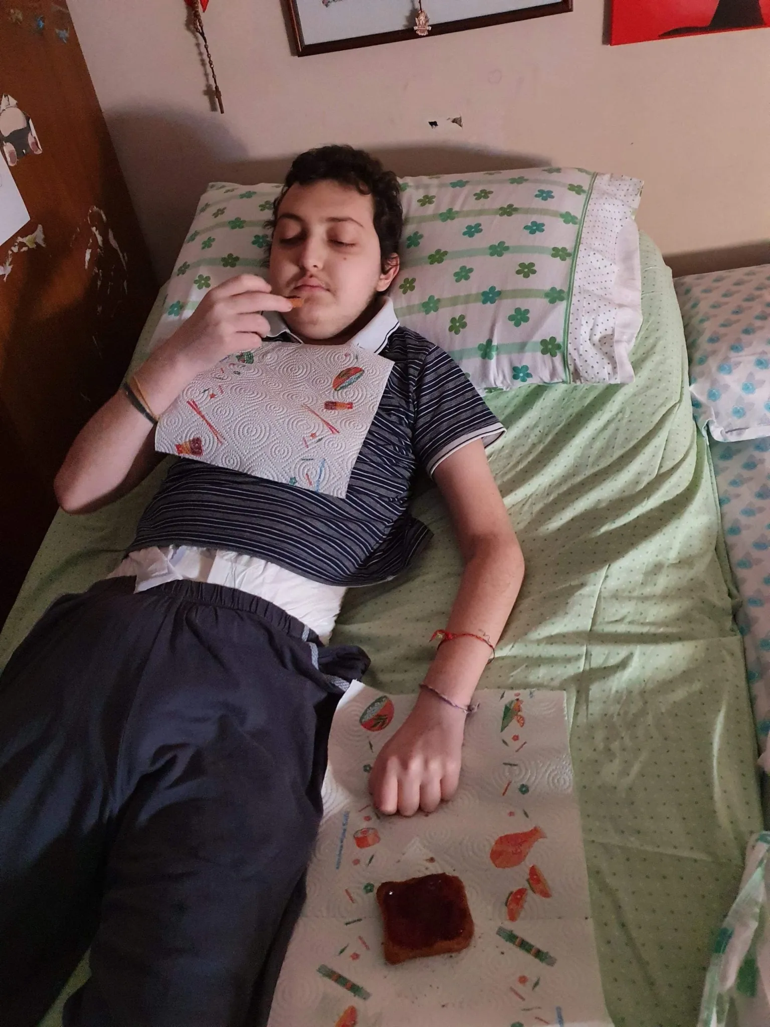 Eugenio dorme nel suo lettuccio
