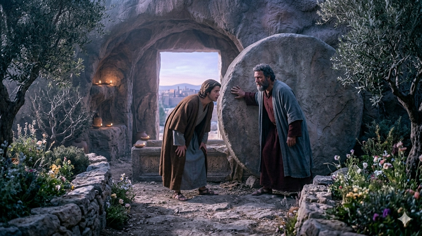 La mattina di Pasqua è caratterizzata dalla fretta. Maria corre a dare l’annuncio, Pietro e Giovanni corrono al sepolcro. Io, Remigio, sento in questa corsa il battito accelerato di chi ha il cuore colmo di una speranza che non osa ancora pronunciare. Giovanni, il discepolo più giovane, arriva per primo, ma aspetta Pietro: un segno di rispetto e di comunione che ci insegna quanto sia importante camminare insieme nella Chiesa.