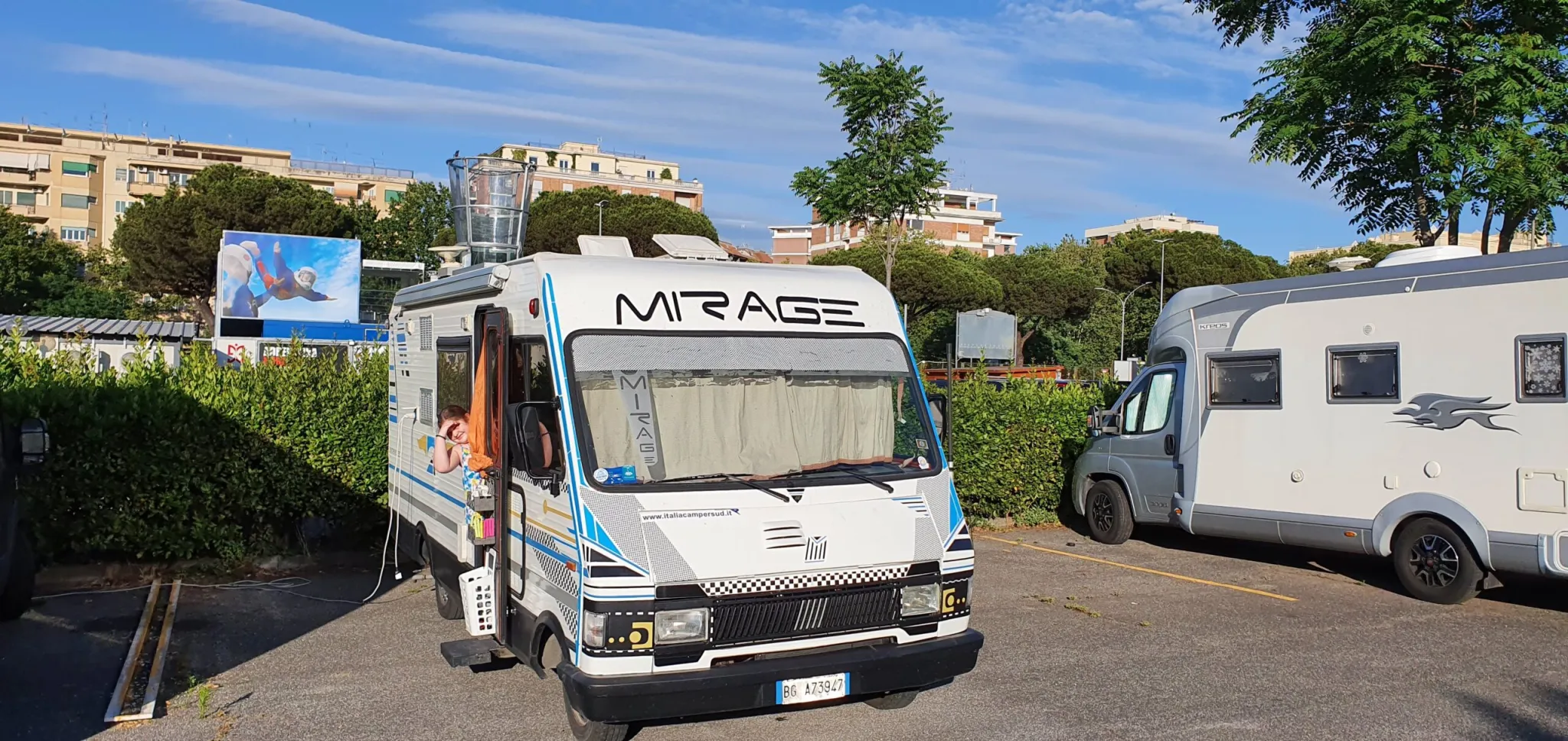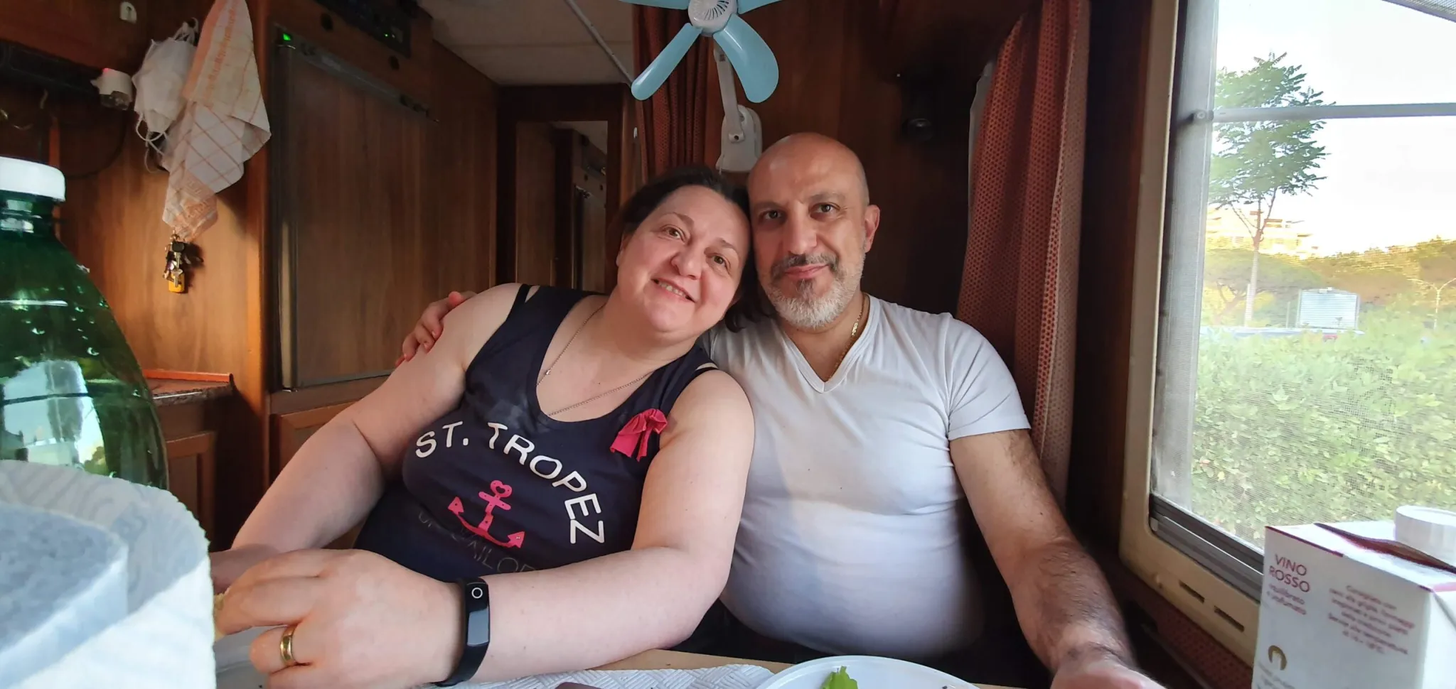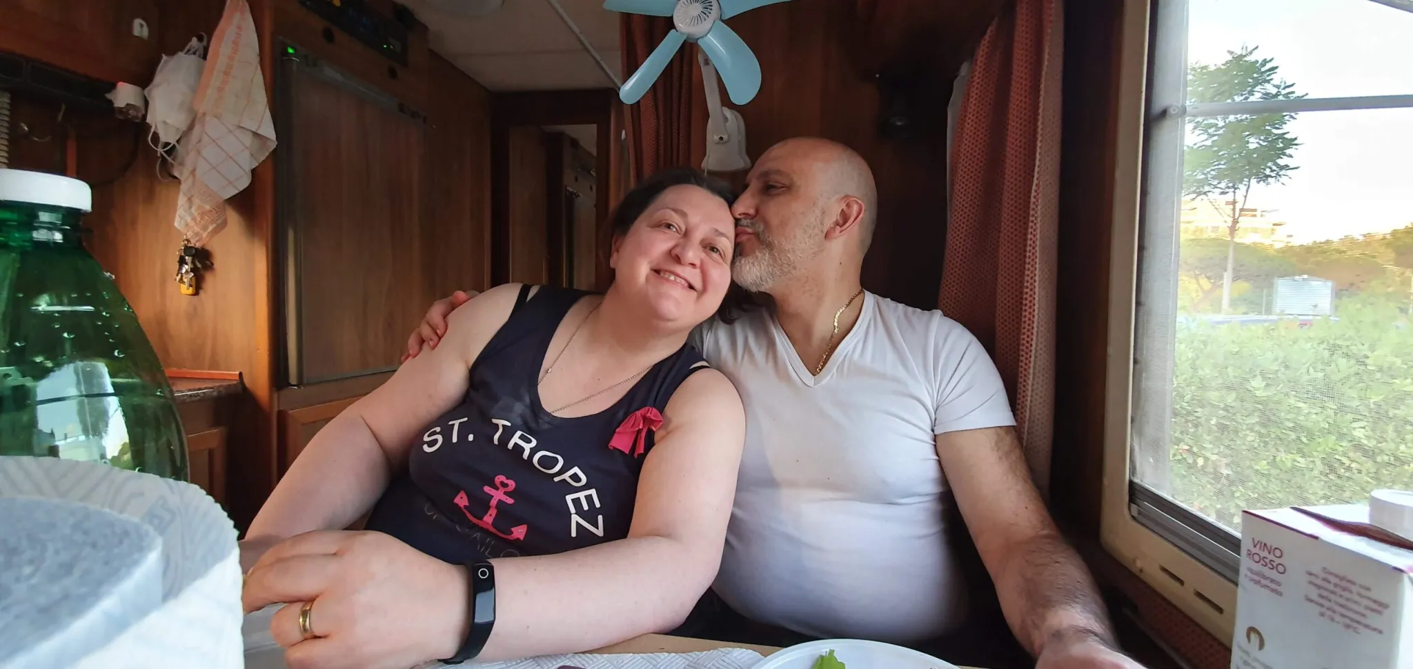 Eugenio e Francesca alla finestra camper